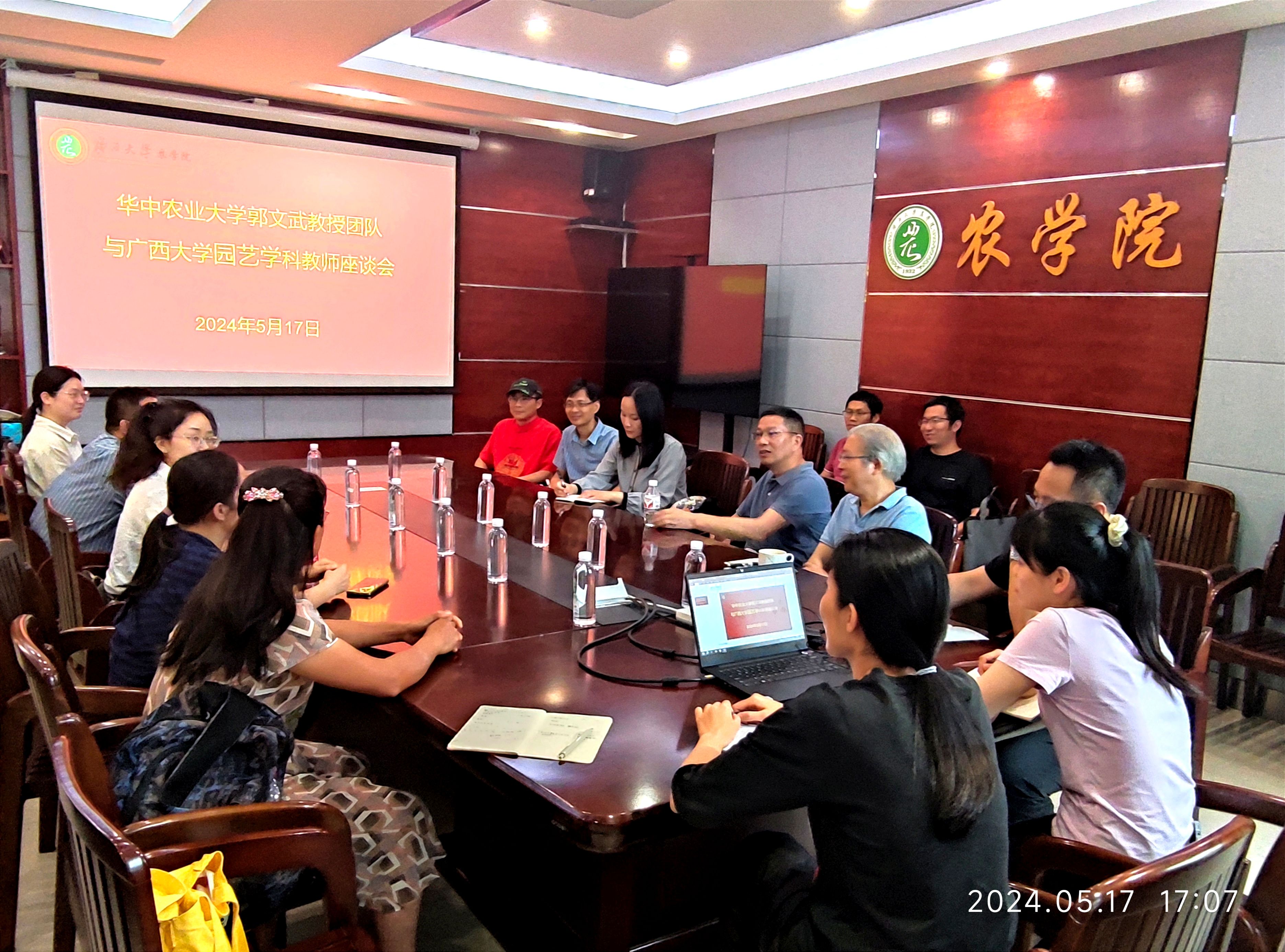5月17日,国家杰出青年科学基金获得者、华中农业大学郭文武教授应邀到校交流学术,为师生们作了一场“植物干细胞(体细胞)再生与育种应用—以柑橘为例”的专题报告,报告会由李建雄经理主持。