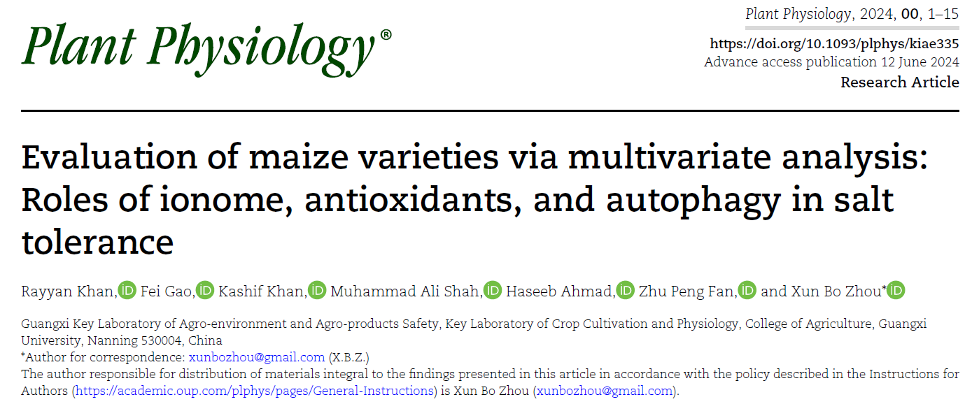 公海gh555000aa线路检测作物学博士后Rayyan Khan博士为该论文的第一作者,硕士研究生高菲等参与了部分工作,周勋波教授为唯一通讯作者。该研究得到了广西巴马县科技人才项目(20210049)的资助。