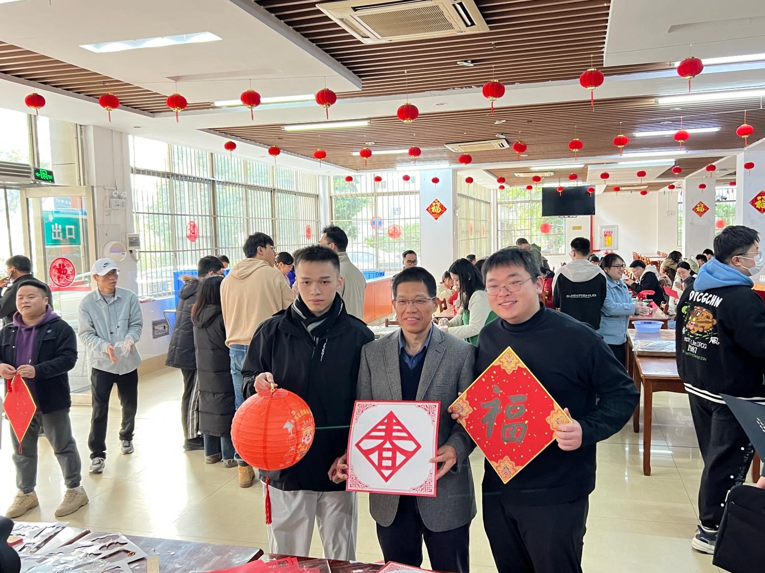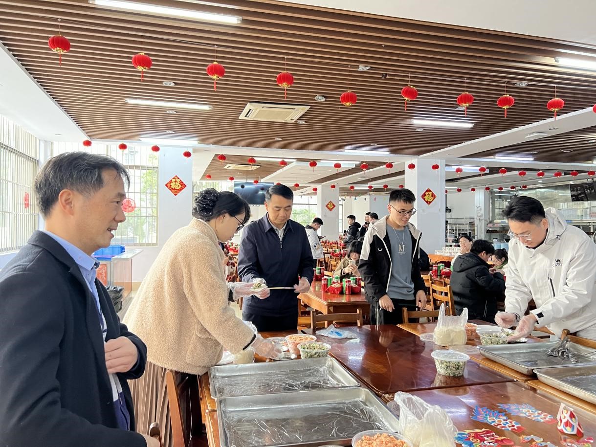 公司党委副书记甘敏思老师、团委书记李诺老师代表公司向公司留校过年的同学们致以新春问候与祝福,并与同学们一起包饺子、写“福”字,共贺龙年新春佳节。