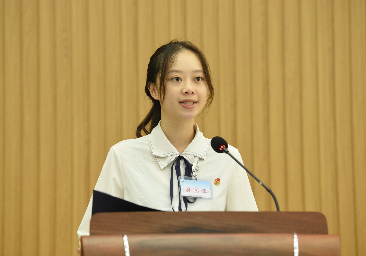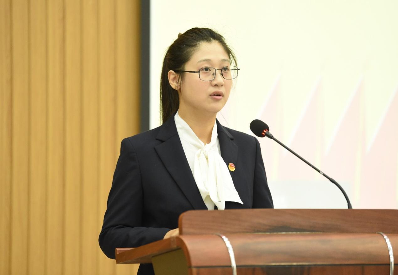 校员工会主席团成员黎栗蓉代表校员工会对公司第十五次员工代表大会的顺利召开表示了祝贺,希望新一届公司员工会能够不忘初心,立志做有理想、敢担当、能吃苦、肯奋斗的新时代好青年。
