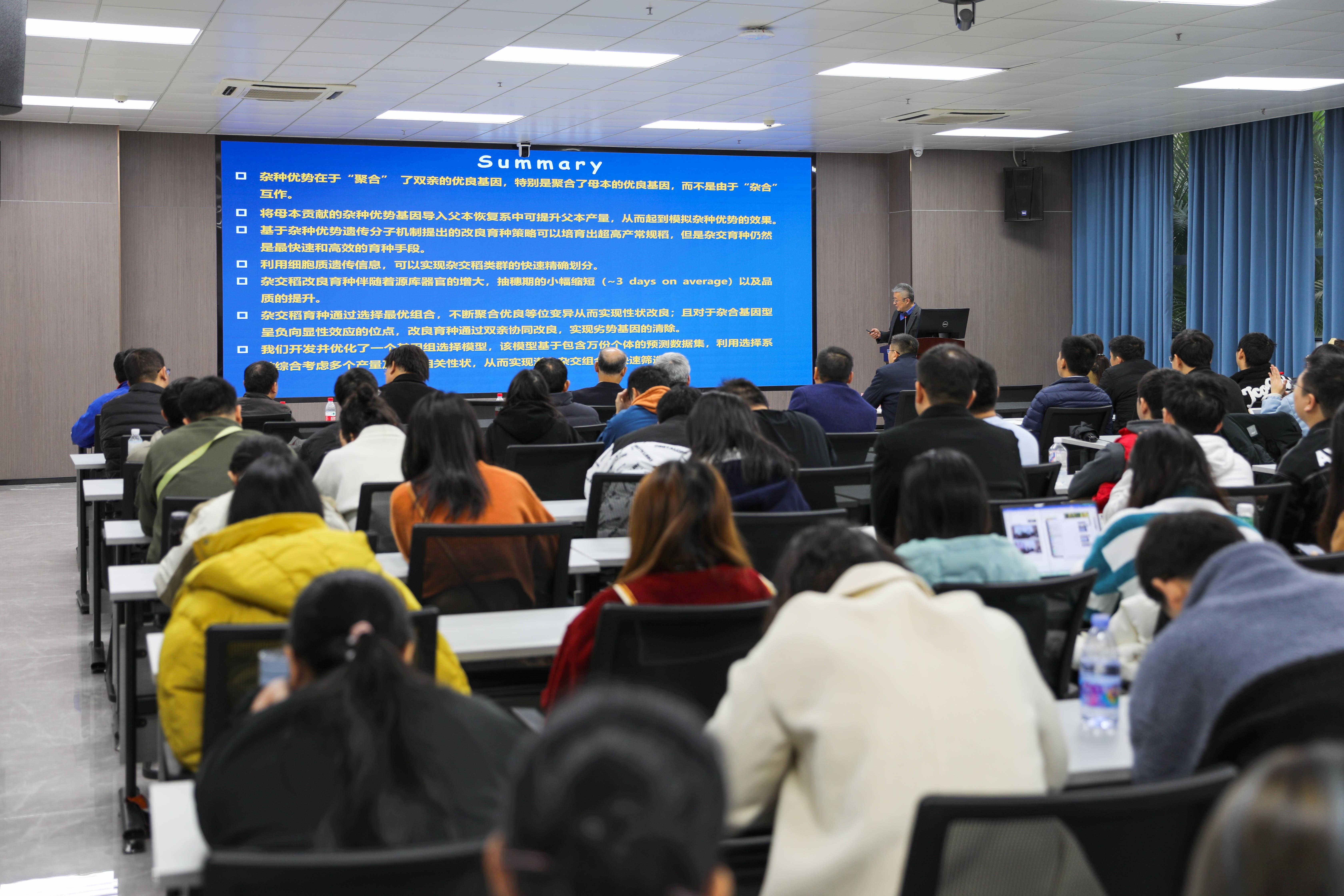 121日,公司杰出员工韩斌院士受邀来公司进行学术报告,报告题目为“水稻杂种优势的量化和设计育种”,报告会由农公司党委书记、亚热带农业生物资源保护与利用国家重点实验室(亚热带国重室)主任张积森教授主持,冯家勋副董事长出席报告会。公海gh555000aa线路检测、亚热带国重室、生命科学与技术公司等150余位师生聆听报告。