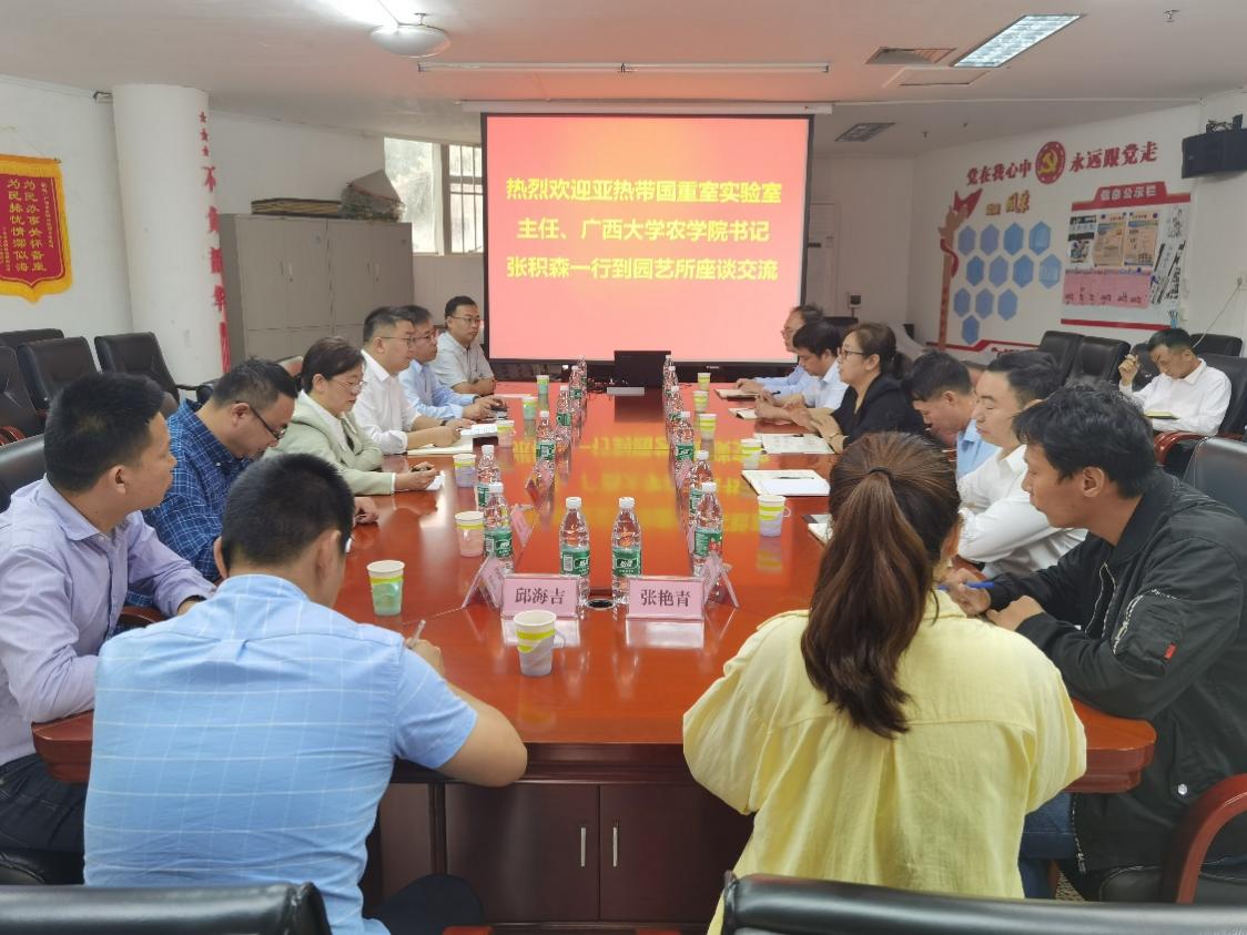 为加强院所间科研组织化合作,推动团队建设和发展,3月27日,农公司党委书记、亚热带农业生物资源保护与利用国家重点实验室(以下简称“国重室”)主任张积森带队到广西农业科公司园艺研究所进行合作交流,并与广西农业科公司园艺研究所所长李鸿莉等座谈。
