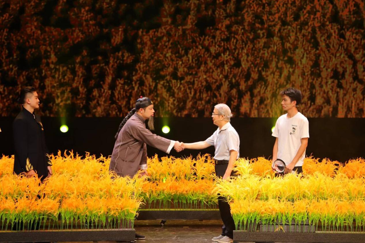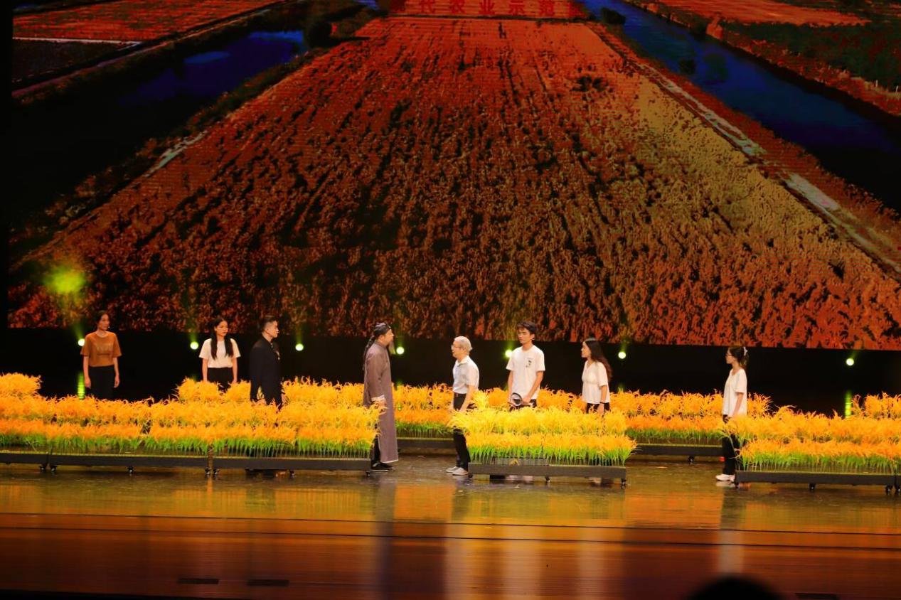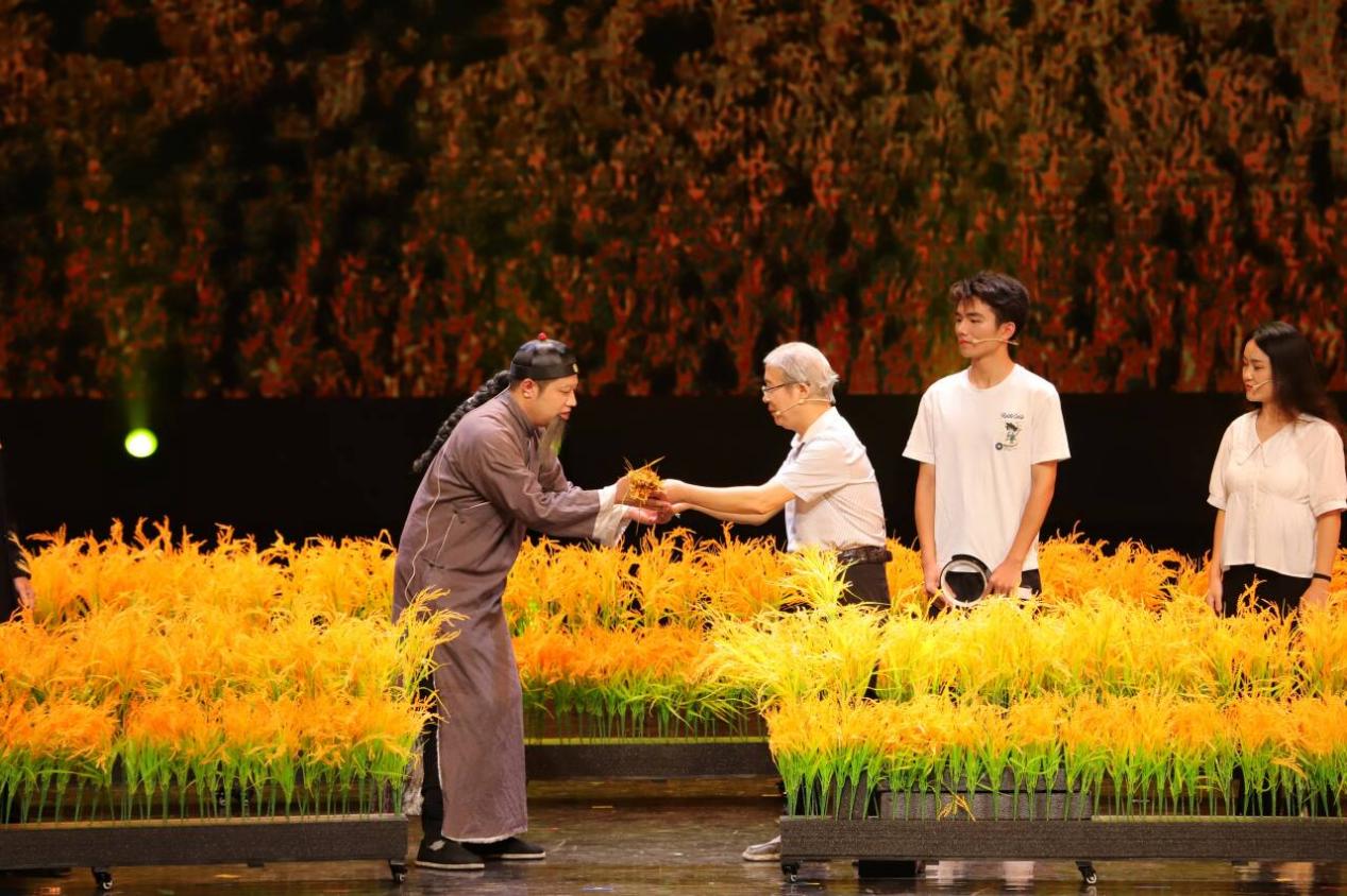 《禾下乘凉梦》结合公司专业特色,以表演为媒穿越古今,通过日常的点滴小事展现农业先驱的风采。剧本围绕“禾下乘凉”的梦想展开,从宋应星让天下人衣食富足,到袁隆平的让人们不会再挨饿,从《天工开物》的农业智慧,到现代科学技术的杂交水稻奇迹,从科研育人到科学引领,让观众得以窥见农业科学家对天下人的责任担当与对国家的卓越贡献,也是新一代农院人为实现“禾下乘凉梦”的强农目标接续奋斗、笃行不怠的铿锵誓言。
