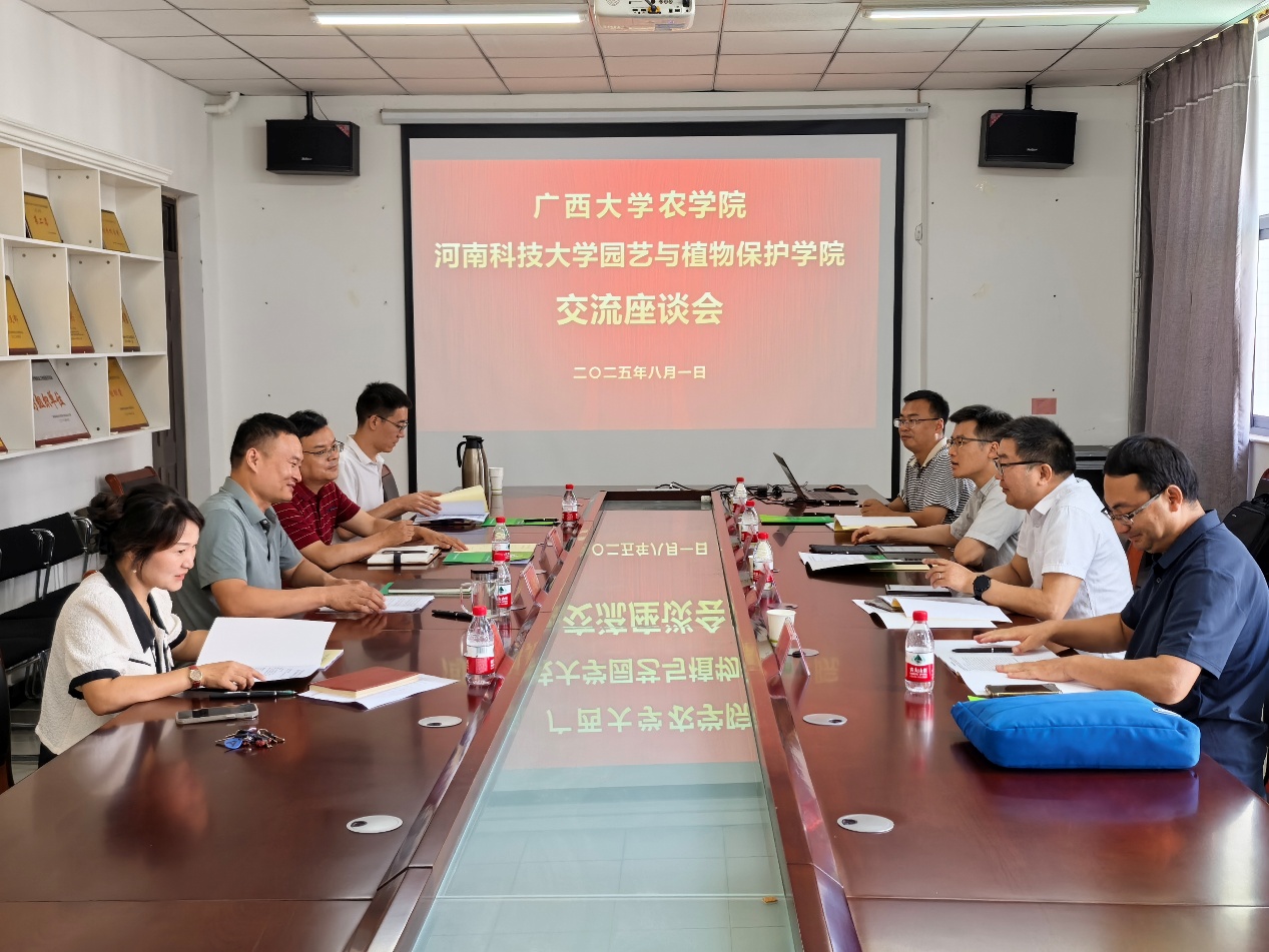 2025年8月1日,在河南科技大学,园艺与植物保护公司经理刘圣明详细介绍了公司的发展历程、团队队伍、科研平台及园艺学科特色。副经理郭大龙重点分享了园艺团队建设成果与实践经验,包括学科方向凝练、人才培养体系构建等关键环节。随后,张积森经理介绍了公海gh555000aa线路检测的基本情况及园艺学科在亚热带作物研究领域的特色优势,围绕学科交叉融合、科研团队建设等方面分享了经验做法。双方就学科发展规划、学位点申报策略、科研合作模式等共同关注的问题展开座谈,结合地域资源特色,探讨了园艺学科在服务地方农业经济中的路径,为进一步深化合作奠定了基础。
