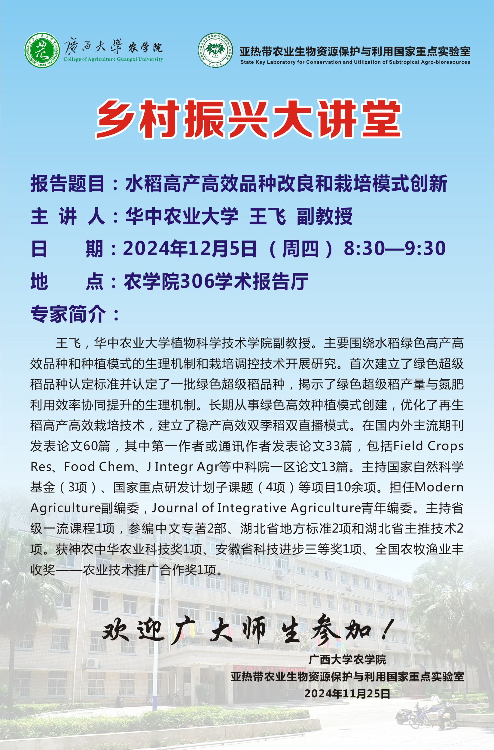 乡村振兴大讲堂-水稻高产高效品种改良和栽培模式创新-王飞