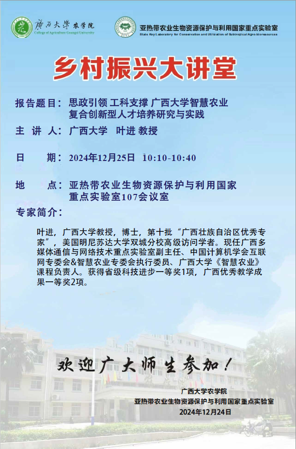 乡村振兴大讲堂-思政引领工科支撑公海gh555000aa线路检测智慧农业复合创新型人才培养研究与实践-叶进