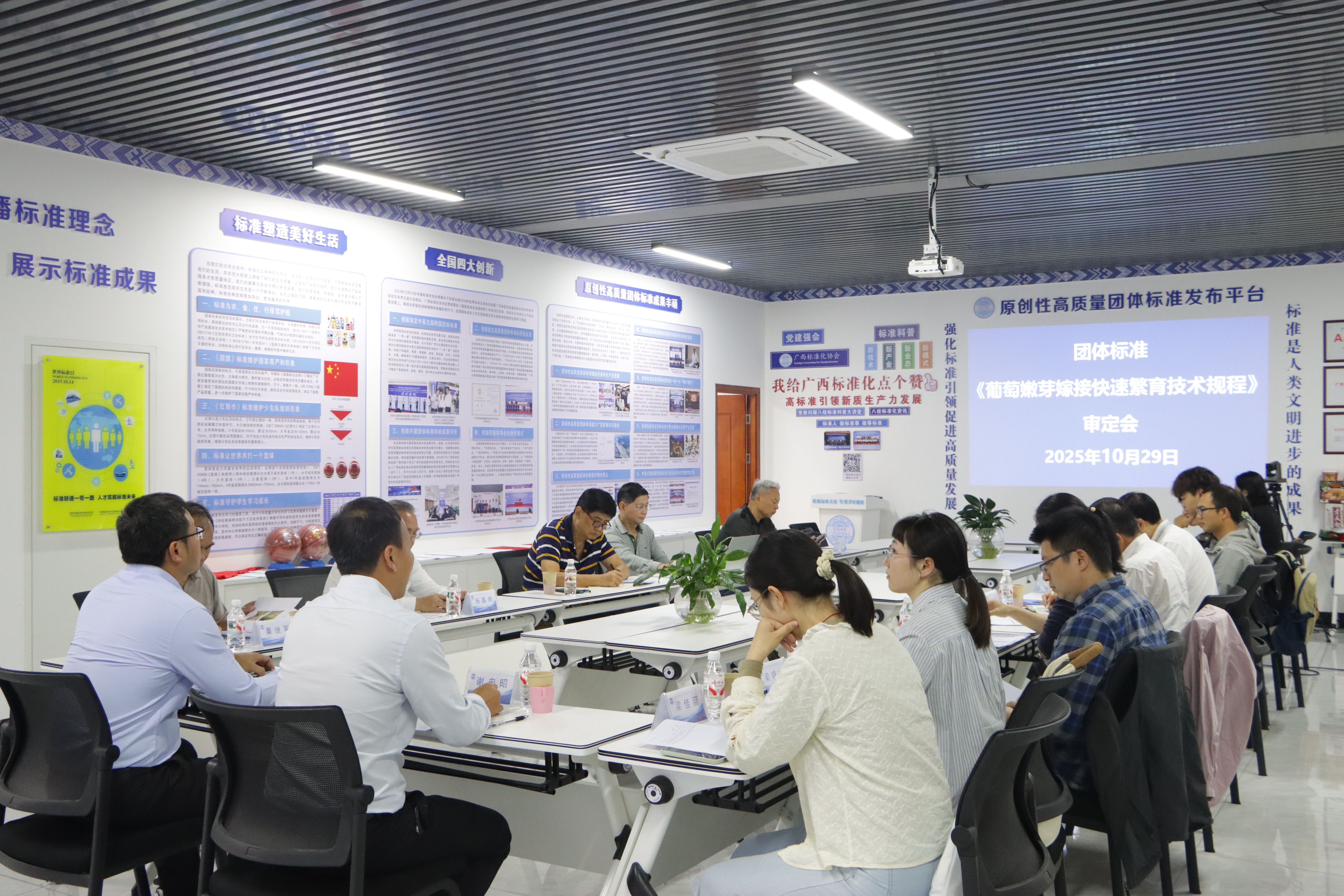 广西标准化协会会长谢宏昭高级工程师、秘书长黄林华高级工程师,广西壮族自治区农业科公司白先进研究员、曹雄军副研究员,公海gh555000aa线路检测王博副教授、杨德龙、梁佳丽、赵梓琪,广西特色作物研究院梁晓文农艺师,广西真诚农业有限公司总经理白扬农艺师、陆丽农艺师、廖永峰助理农艺师,广西标准化协会标准部主任苏子华及编制工作组其他成员参加了此次团体标准审定会。