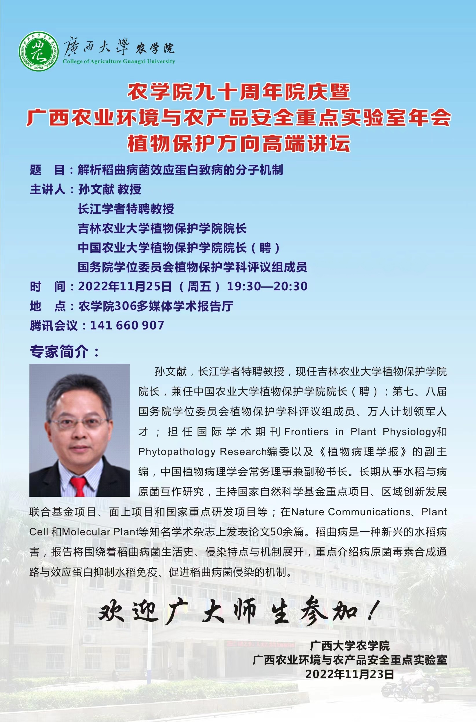 公海gh555000aa线路检测建院九十周年院庆学术活动-解析稻曲病菌效应蛋白致病的分子机制-孙文献
