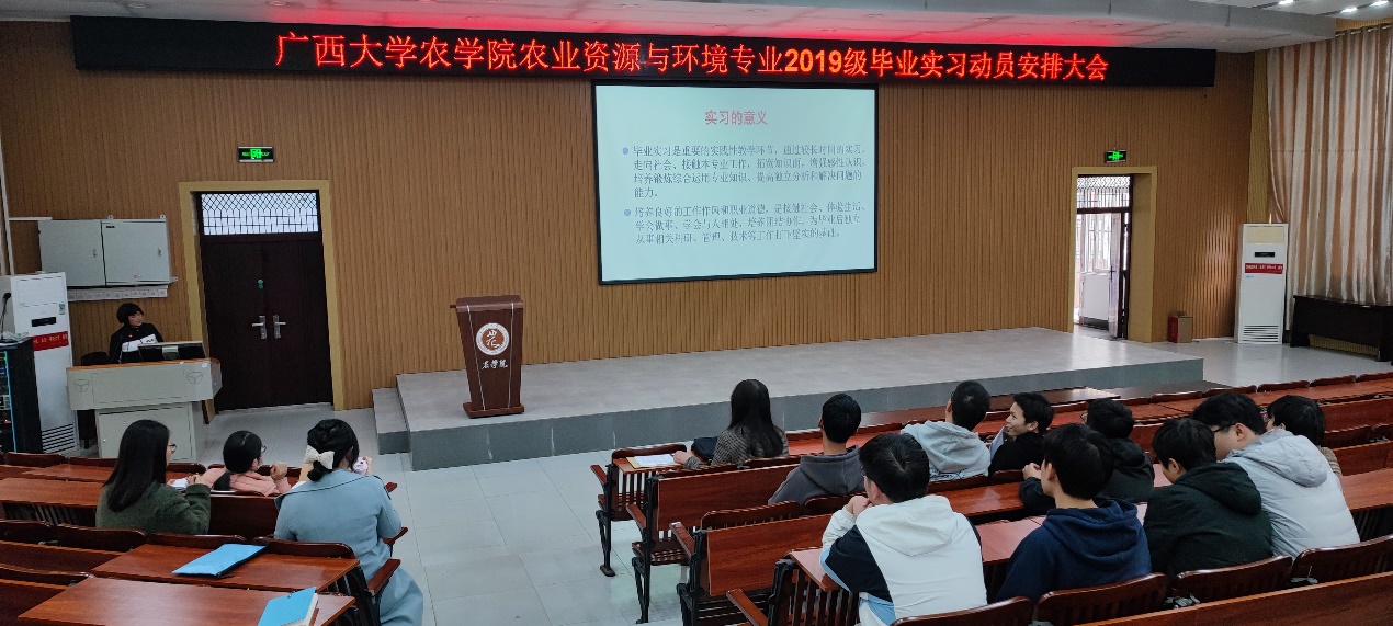 实习是高校人才培养的关键环节,2月16日下午,公司农业资源与环境专业组织召开了2019级本科生毕业实习动员大会。会议由专业实习负责人唐新莲老师主持,公海gh555000aa线路检测主管教学副经理韦燕燕老师、各实习指导老师和所有参加实习的员工出席了本次大会。