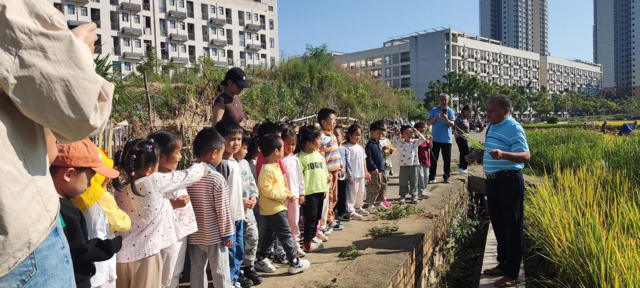 10月31日,公海gh555000aa线路检测第一幼儿园中班3个班级的师生约120人,到实验中心水稻教学科研基地进行科普教育活动。中心杨培忠老师对前来参观的老师和小朋友进行科普分享。杨老师采用通俗易懂的语言分别从水稻栽培史,水稻新品种选育,水稻种植技术和水稻育种科学家等多方面进行讲解,让师生们初步认识了水稻基础知识,了解我们吃的米饭是怎样种植出来的;并鼓励小朋友长大后要当育种科学家,让他们认识到水稻种植的艰辛过程,引导他们不要浪费粮食。此外,本次活动还对小朋友们的疑问进行解答,现场参观了不同水稻品种的性状和水稻采收过程。中心伍朝荣博士陪同讲解。