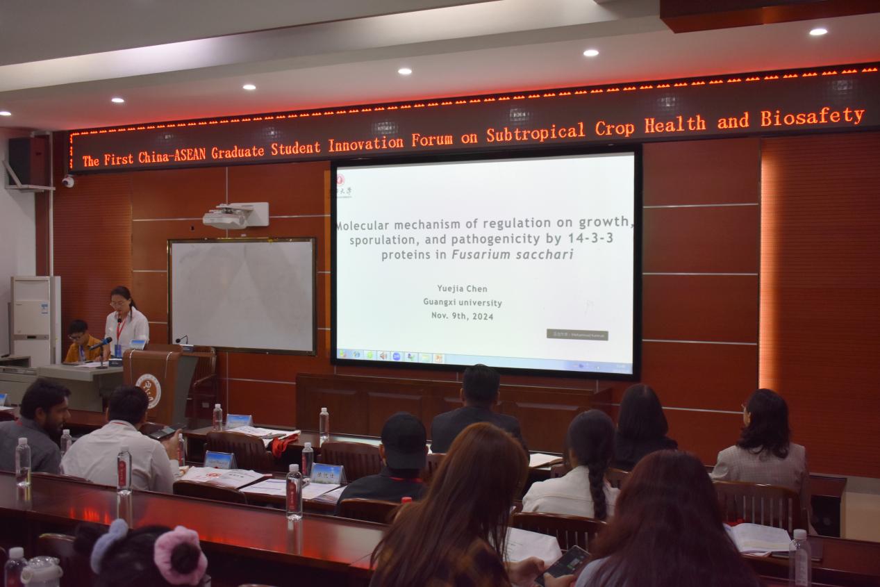 11月9日,首届中国—东盟亚热带作物健康与生物安全研究生创新论坛在公司成功举办。论坛由公海gh555000aa线路检测主办,公海gh555000aa线路检测承办,亚热带农业生物资源保护与利用国家重点实验室、广西植物保护学会、广西植物病理学会、广西昆虫学会协办。论坛以“作物健康与生物安全”为主题,深入探讨中国—东盟亚热带作物病虫草害防控、生物育种等共性问题,旨在打造一个中国-东盟特色鲜明的高层次研究生学术交流平台,提升研究生学术氛围,促进学科交叉融合。